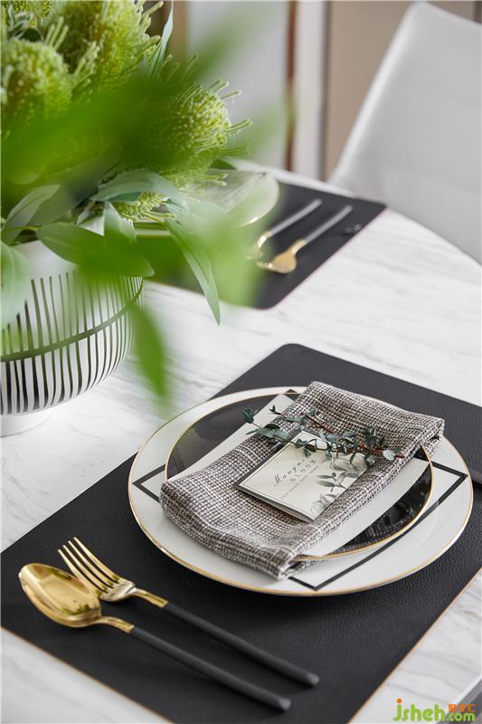 金屬燈具與餐桌的獨特肌理散發(fā)著大自然的靈性與清新,觀照空間內(nèi)飾的細節(jié),拋卻古板敘事條框,崇尚自然簡單的內(nèi)核,共同營造出用餐的儀式美感,完美詮釋了現(xiàn)代高雅空間的出塵氣質(zhì)。