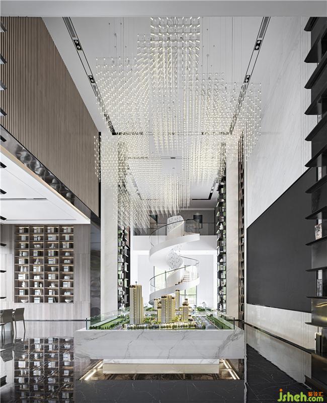 以理性建構(gòu)空間,以藝術(shù)融入感悟??臻g中部為沙盤(pán)區(qū),橫平豎直的布局彰顯大氣,中軸線的設(shè)計(jì)手法,既明確了空間各功能區(qū)域的劃分,又讓空間變的規(guī)整大氣。