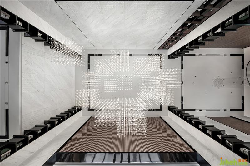梯間藝術(shù)裝置“雨滴”,傾瀉間如流光溢憬,以近乎凌駕于世俗審美之外的靈動(dòng)空盡,訴說(shuō)著光與影的對(duì)話,傳遞著時(shí)光的生命軌跡。