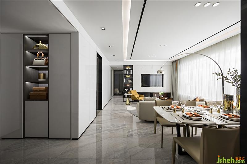 排列有序的輪廓,光與影的滲入,組成線與面的節(jié)奏變化,自在隨如水般漫溢而出,心緒樸素而無瑣屑。樣板房設(shè)計