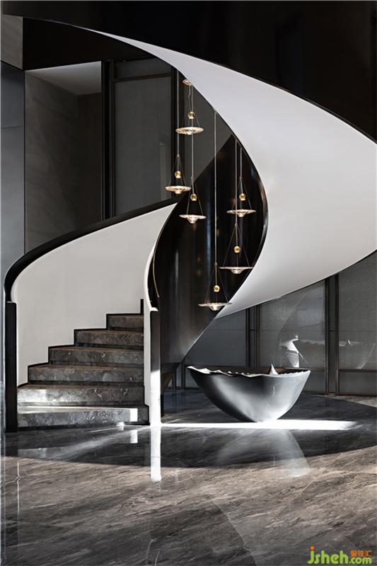 一步一景,旋轉(zhuǎn)樓梯以滇池之水流動(dòng)的形態(tài)為構(gòu)想貫穿空間,形成了更富有韻律和耐人尋味的故事脈絡(luò)。宛如扶搖直上的激情,更似生命的交響演奏。裝修公司