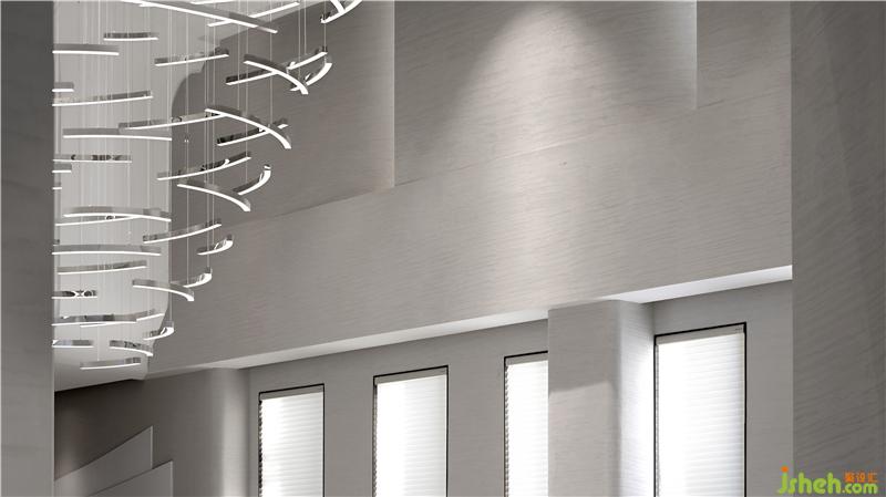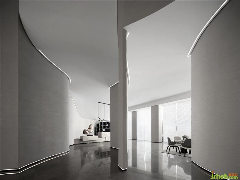接待前廳,幾段曲線,寥寥幾筆繪盡漢水迸流的寫意之美,意象與自然并肩偕行。深厚的人文與線條的靈動(dòng)如浪濤般綿延,素雅無(wú)邊卻又風(fēng)雅自成。