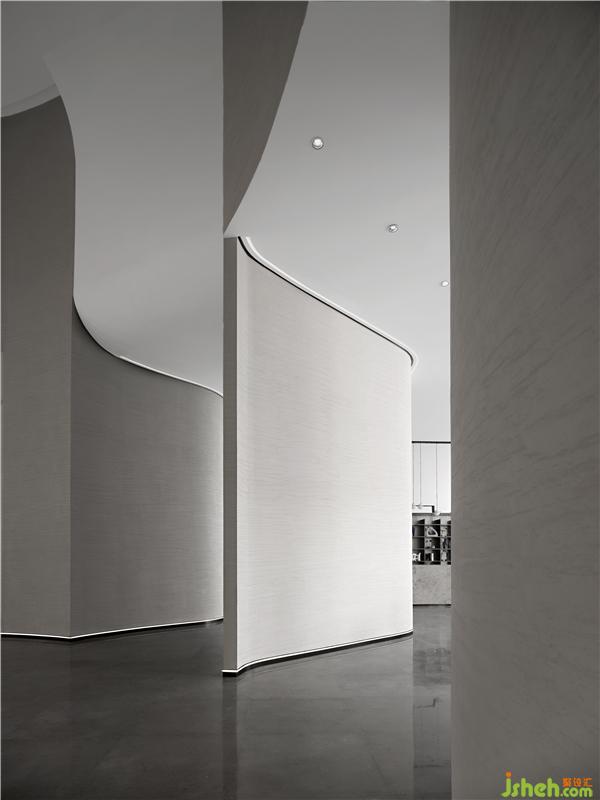 過(guò)道視覺(jué)延續(xù)水的形態(tài),素雅簡(jiǎn)潔的墻面延續(xù)著水流的方向,激蕩出一片片層迭起伏的水面,自由流淌出更為悠遠(yuǎn)的生命意涵。