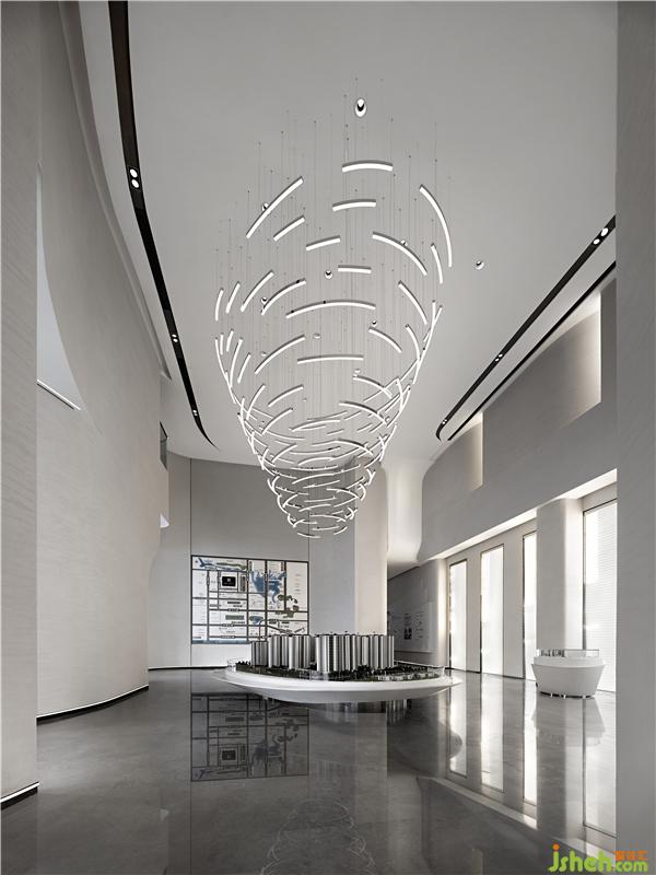 沙盤空間,從河流中汲取靈感,將自然的節(jié)奏、流動、旋轉形態(tài)和變化表現(xiàn)在這個充滿活力的流光璀璨之上。