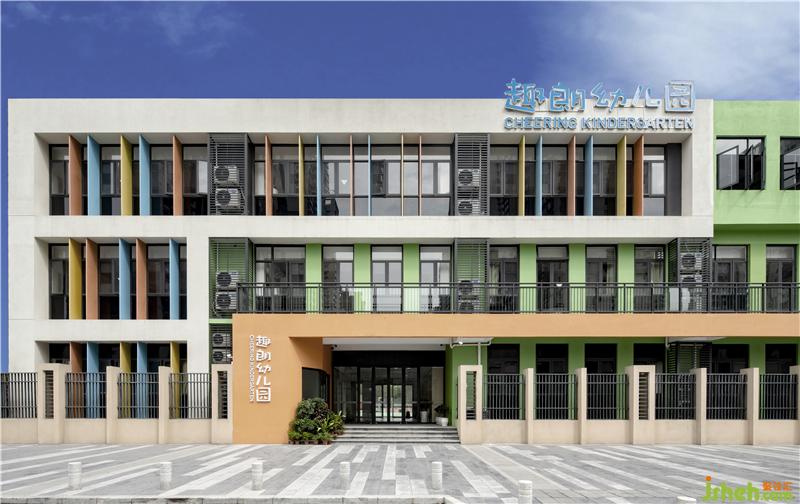 色彩的外墻猶如孩子們的童年,承載著繽紛的美好。趣朗幼兒園外觀用暗綠色和黃色為主色調(diào),以藍(lán)色、米色、白色為配色,讓整個(gè)建筑充滿童話般的色彩。