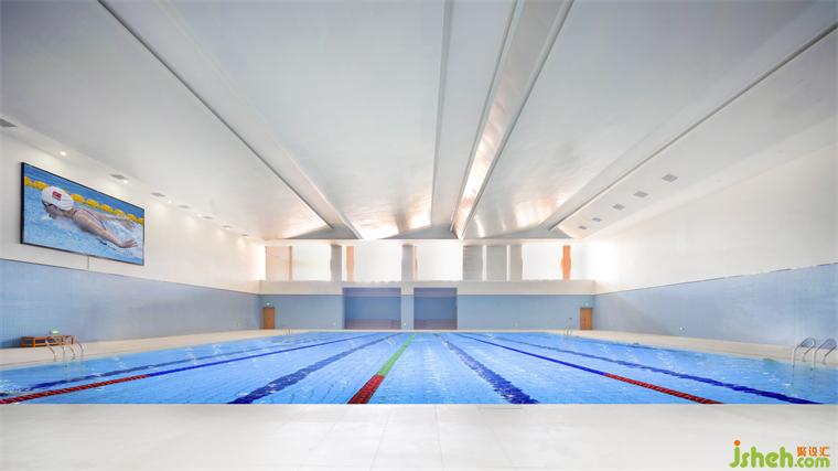 集風(fēng)雨操場、游泳館、羽毛球館三館合一,形成一個多功能的空間。在燈光設(shè)計(jì)上,風(fēng)雨操場設(shè)置兩套獨(dú)立控制的照明系統(tǒng),滿足籃球場及羽毛球場分開照明需求。天花設(shè)置暗藏?zé)簦苊庵苯庸庹諏\(yùn)動的影響,除滿足運(yùn)動外,還可用于集會,表演等多種功能。