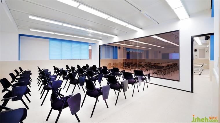 結(jié)合當(dāng)下教學(xué)模式,單一功能的教學(xué)空間越來越不能滿足,全新的教室形態(tài)——錄播教室。錄播教室以創(chuàng)新技術(shù)為支撐,將傳統(tǒng)的面對面授課與現(xiàn)代化的數(shù)字化教學(xué)相結(jié)合。設(shè)計(jì)師通過布置小面積吸音板,有效控制教室內(nèi)聲音擴(kuò)散,營造良好的聽音環(huán)境,提升學(xué)生的聽課體驗(yàn)和學(xué)習(xí)效果。