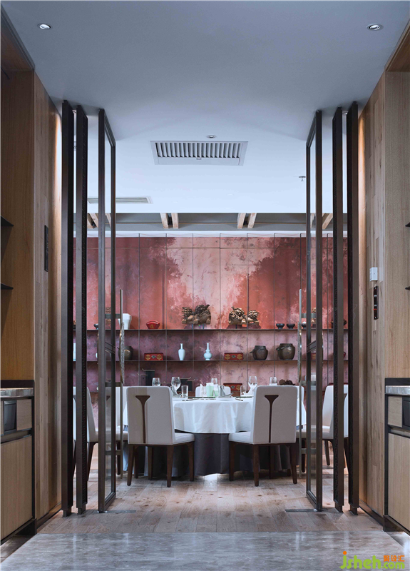 二樓最大的驚喜是一端盡頭的小型宴會(huì)廳,可用作聚會(huì)的場(chǎng)所,墻面使用了肌理漆,將故宮紅墻的掠影引入室內(nèi)。The most surprising space on the second floor is the small banquet hall at one end, which may serve as conference room. Verniciai coating is used on the wall, which is similar to the red wall of Forbidden Palace.設(shè)計(jì)公司