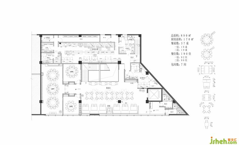 退入公共區(qū)域,這一抹紅墻也成為了調(diào)和二層整體空間色調(diào)的視覺重點(diǎn)。將傳統(tǒng)包房設(shè)計(jì)為小型宴會(huì)廳的功能,也是將傳統(tǒng)餐飲服務(wù)功能提升,其中配備了現(xiàn)代化的影音設(shè)備,滿足了當(dāng)下的個(gè)性化消費(fèi)需求。The red wall also serves as the visual emphasis to mitigate color tones of the second floor. Transforming traditional room into small banquet hall also improves traditional dining service, along with modern video and sound equipment to meet modern consumers’ demand.