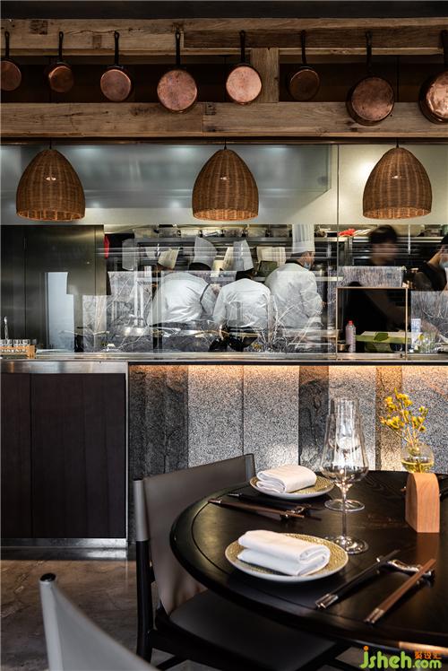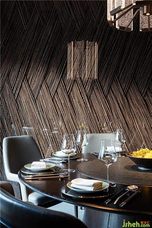 開放就餐區(qū)里,竹子、藤條經(jīng)過有節(jié)奏感的編織獲得了新身份,作為屏風、屋面裝置、吧臺等等,設(shè)計師賦予它們簡潔當代的整體感,又利用質(zhì)樸材料本身創(chuàng)造細節(jié)中豐富的精致。