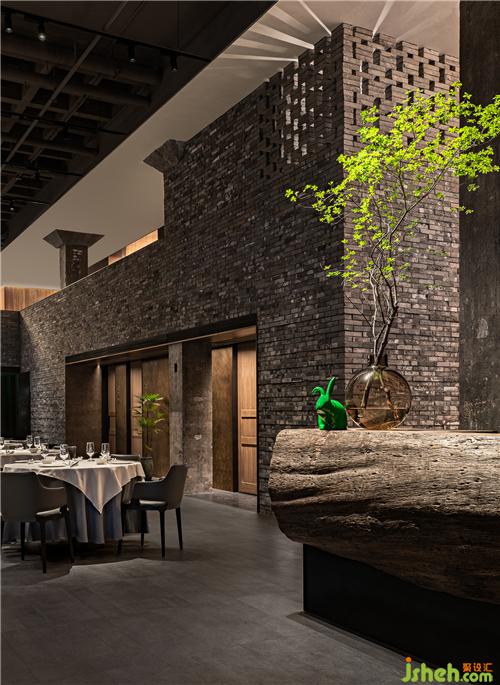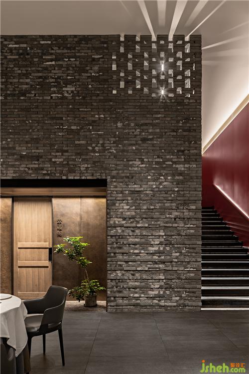 | 扶梯旁的一層包間被老青磚圍合在內(nèi)部