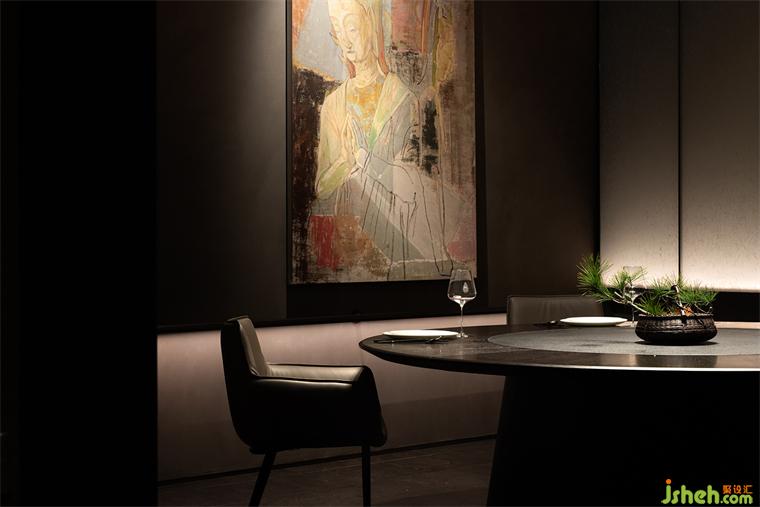 吧臺、茶臺等區(qū)域構(gòu)建出微景別的自然,北方冷空氣里的蒼勁生機(jī)與文人書房的微縮園林皆有呈現(xiàn),這些自然的虛構(gòu)空間將食客的意識推出城市、推向自然。它們留白的想象空間比極盡還原的山水更貼近臻選店深遠(yuǎn)含蓄的價值傳達(dá)。