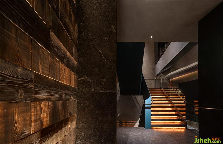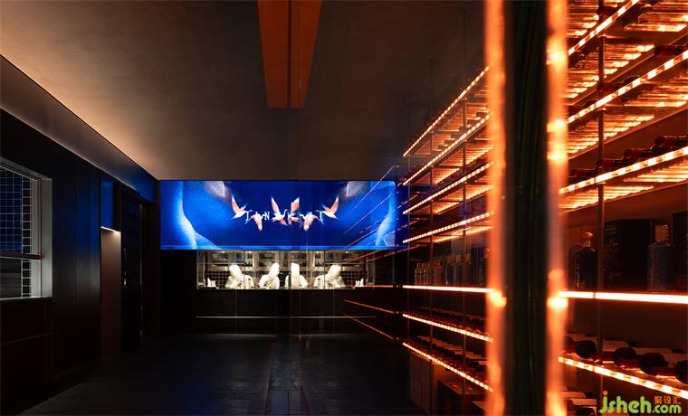 一層明檔是進出餐廳兩次必經(jīng)的通道,它是一個煙火氣和當代感十足的序幕以及謝幕,食客進出都能觀察到廚房紅火忙碌的備餐過程,巨幅LED屏和酒窖共同營造出迷人的燈光效果和融合體驗,創(chuàng)造出一種充滿參與感和本真的用餐體驗。