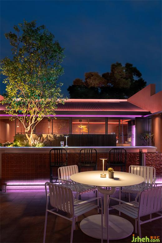 非露天區(qū)劃分為四間VIP包房,從下仰望,走廊屋頂打開(kāi)圓形天窗,讓人聯(lián)想到太空艙飛離地球的瞬間灑下機(jī)械的冷光。