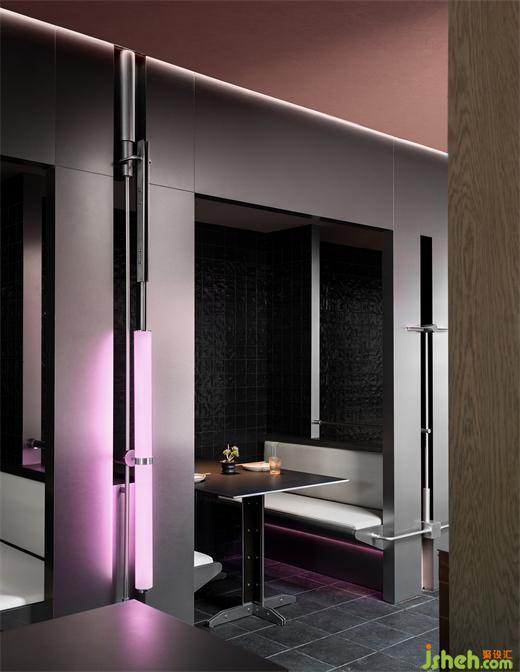 在燈箱和空間角落不時(shí)露頭的一只黑貓是設(shè)計(jì)師為餐廳設(shè)計(jì)的“夜貓”IP,每到日落,北京烤魚鼻祖接管年輕人的摸魚時(shí)間:溫柔澎湃、自在微醺。