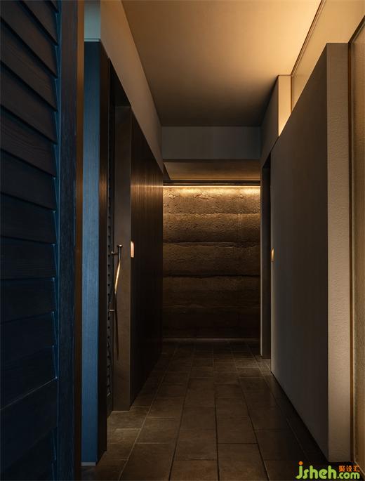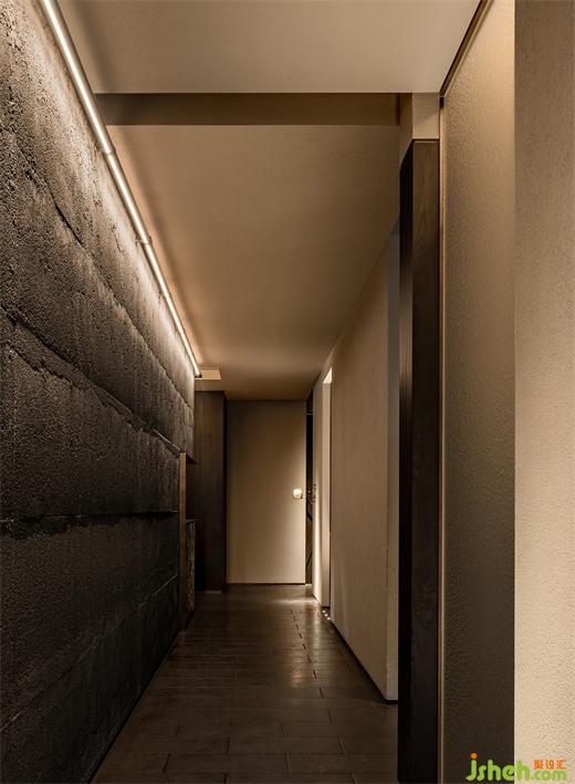 粗獷的帶有沙礫質(zhì)感的涂層包覆散座區(qū)天花和立面,磚結(jié)構(gòu)柱和相對(duì)纖巧的木結(jié)構(gòu)組合成多功能臺(tái),同時(shí)作為散座區(qū)強(qiáng)有力的精神支撐,看似未經(jīng)修飾的材料和極端簡(jiǎn)素的結(jié)構(gòu)處理將食客“放逐”在原始、自由的味覺(jué)邊地。