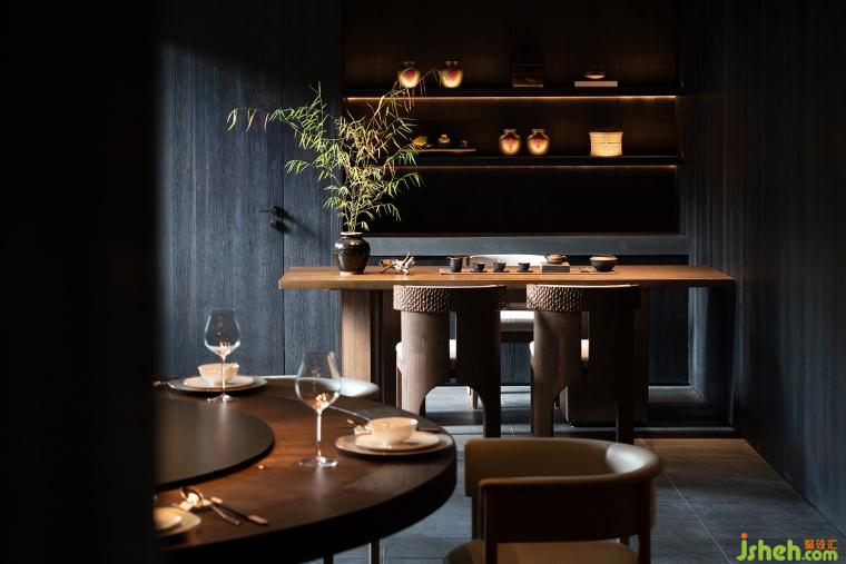 茶室家具延續(xù)空間拙樸,皆簡潔有力摒除細(xì)碎裝點(diǎn),由此形成相對干凈通透的屋子,茶室設(shè)計為味覺搭建一個充裕且不受煩擾的環(huán)境,清幽茶香與環(huán)境結(jié)合一致,方不損茶味。