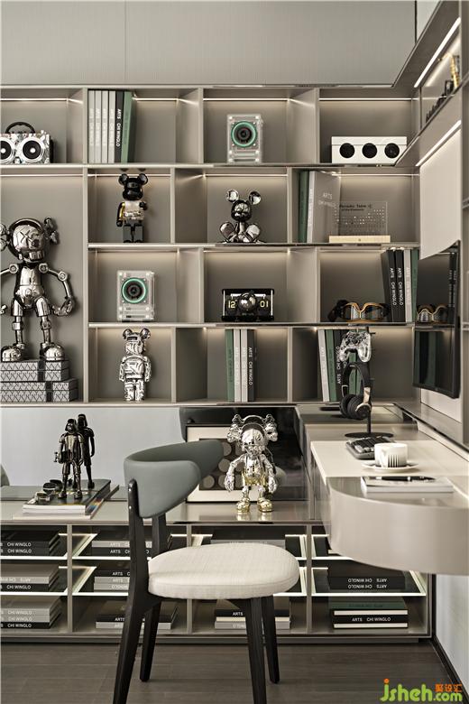 潮玩手辦的加入,為空間增添一絲生動(dòng)活潑之氣,亦隱含著時(shí)代的生機(jī)與朝氣。