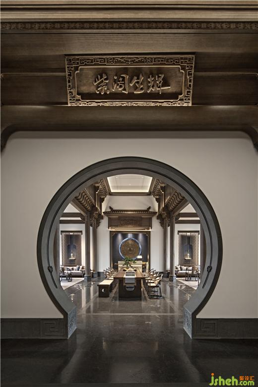 穿過陣列感十足的“圓月門”,曲折回轉(zhuǎn)間序幕徐徐呈啟,建發(fā)營銷中心設(shè)計(jì)敘盡水鄉(xiāng)玲瓏事。