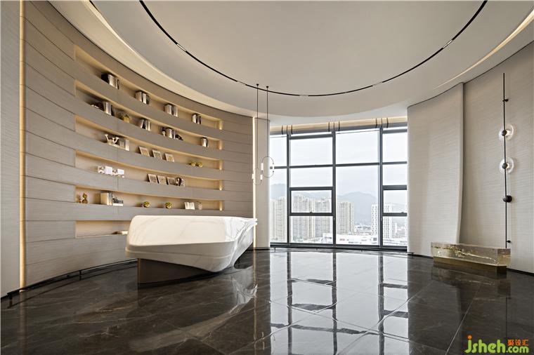 乘著一葉扁舟,飄入“智慧的桃源”盡情遨游。一躍而起的海豚迸發(fā)出向上而生的張力感,福州國貿營銷中心設計延伸出無限的想象空間。