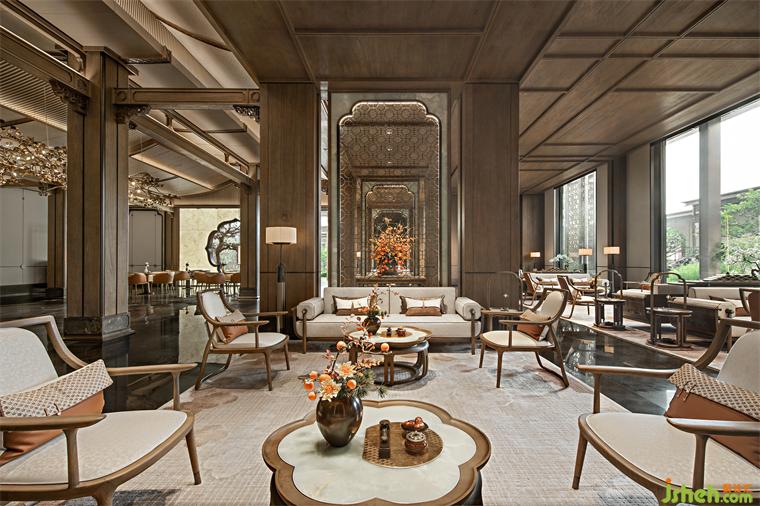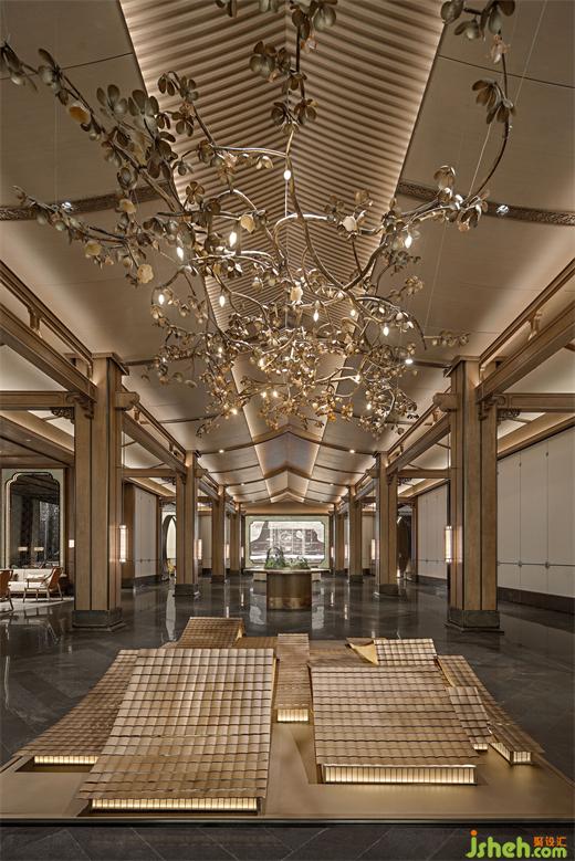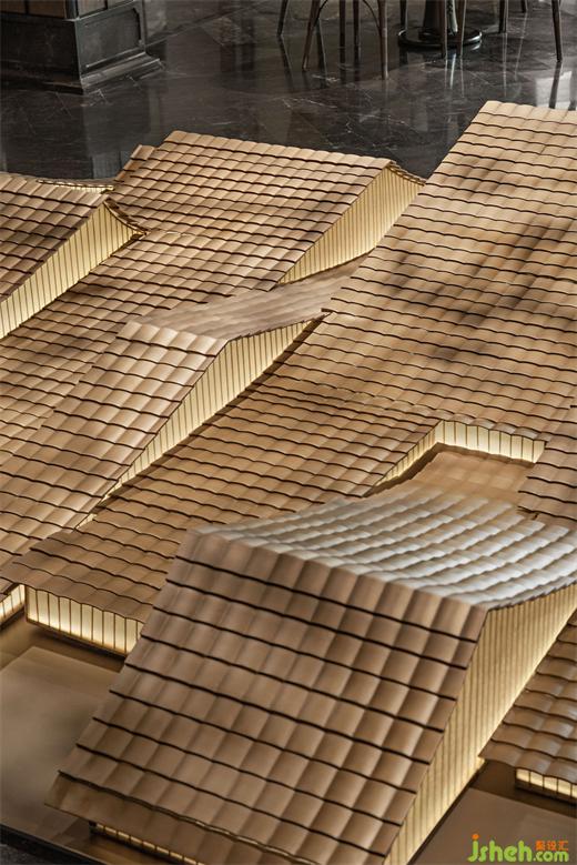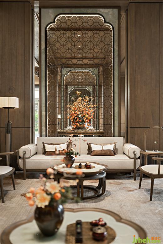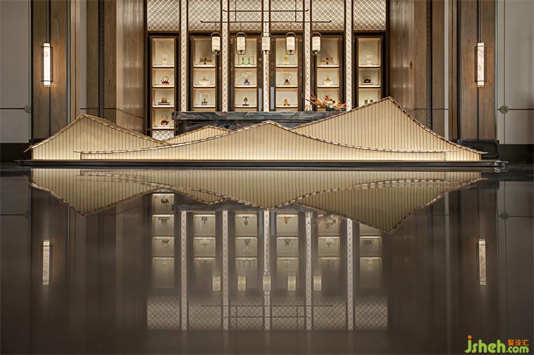 以四合如意紋潤(rùn)飾這幅淡雅清貴的古卷、木合玉之溫潤(rùn),交織出時(shí)間的結(jié),散發(fā)出內(nèi)斂含蓄的東方情致,營(yíng)銷中心設(shè)計(jì)亦傳遞著和和美美、平安如意的美好寓意。