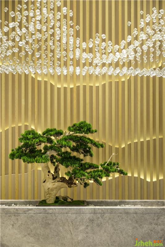 前臺作為辦公室的形象,需要引人注意,燈光就能非常好的達到聚焦的作用,在logo墻的上方用射燈對logo墻進行照射,起到重點提示的作用,讓前臺的設計更顯大氣。從正面的角度可以看出,前臺是用大氣的山水紋大理石制作,色調淡雅、紋理清晰、圖案美觀,大氣而優(yōu)雅。