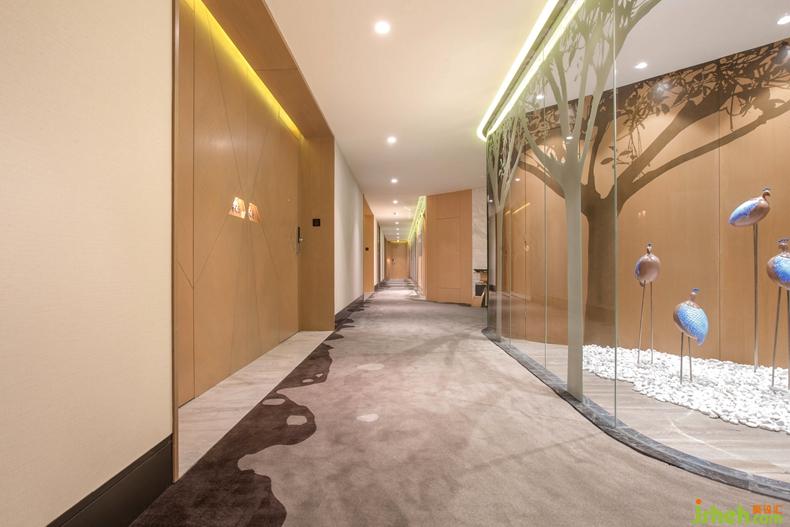 整體設(shè)計追求簡潔而時尚,明快的背景色彩與柔和燈光效果的協(xié)調(diào)則讓客人倍感舒心。長長的客房通道,在地毯的陪襯下在靜謐中流淌著華麗與舒適。在客房通道一旁還有一群候鳥,就好似在深圳紅樹林里每年都會有一群候鳥從西伯利亞飛回來過冬的場景。在整個客房通道空間光線和景色的融合,帶給人親近自然的感受,使視覺上具有通透感。