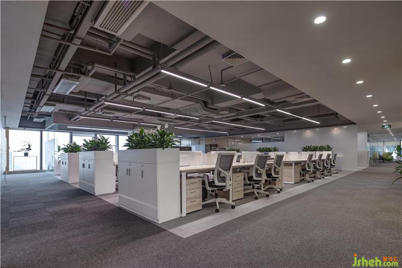 辦公區(qū)域栽有大量綠植學(xué)名白掌,葉片翠綠,花形酷似鶴翹首,辦公室設(shè)計亭亭玉立,潔白無瑕,被稱為“清白之花”更是貼合可思美對“美”的一種追求