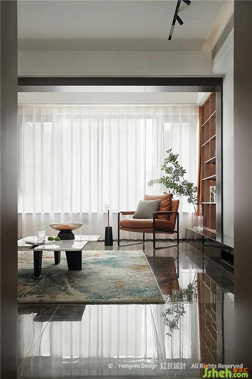 客廳高級(jí)灰用色顯沉穩(wěn)平靜,適宜的活動(dòng)空間給全職在家的女主人,提供充足的空間可以陪伴家人,靠窗的白紗與棕色收納柜,給空間增添不少柔情,我們了解到男主人公是一位優(yōu)秀的航海員,通過提取相關(guān)元素,將大海的韻味運(yùn)用到地毯與擺件中,整個(gè)空間透著祥和、平穩(wěn)、生趣