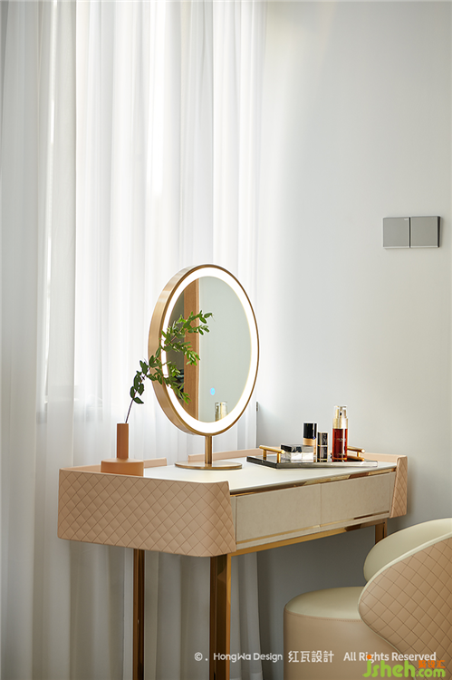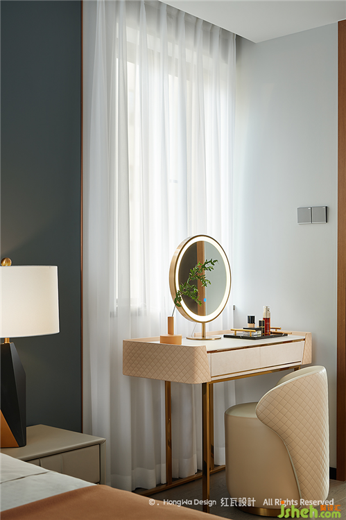 棕色床旗和金屬元素修飾空間,沉穩(wěn)中體現(xiàn)高端與時(shí)尚,梳妝臺(tái)貼心的采用了皮質(zhì)包邊,為女主人提供舒適的護(hù)膚環(huán)境,悠閑的享受專(zhuān)屬自己的精致時(shí)光
