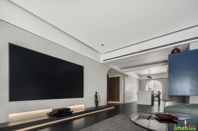 電視背景聯(lián)合玄關(guān)以及用餐區(qū)的一個(gè)大塊面