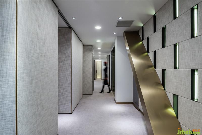 使用線形led燈,提供更有效率的照明效果,主廳天花采鏡面材質(zhì),可解決原基地層高受限所帶來的壓迫感,利用墻面軟包及地毯有效達到吸音的要求,并搭配玫瑰金精致的細節(jié)收口