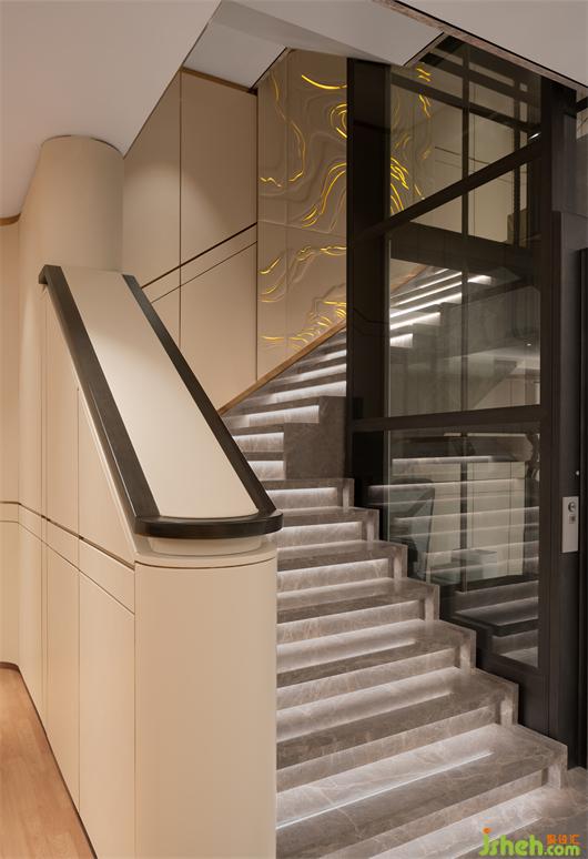 沿藝術(shù)步梯向下,進(jìn)入到以?shī)蕵?lè)休閑為主的負(fù)一層空間。
