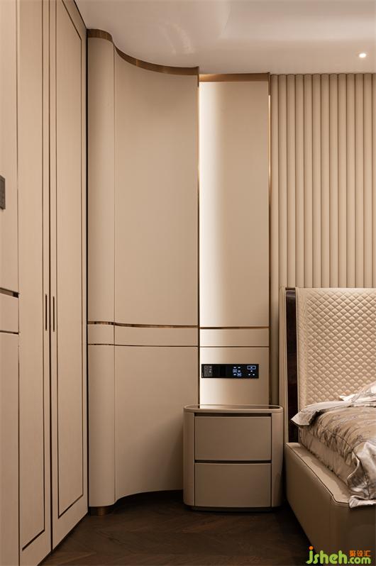 主臥整體性,高雅精致,絲絨床品的西式優(yōu)雅,呈現(xiàn)出居住態(tài)度與精致品味的生活化表達(dá)。不同材質(zhì),統(tǒng)一色調(diào),最終通往內(nèi)心對(duì)美好生活的熱愛(ài)。抬眼望向窗外的那一刻,室內(nèi)的奢雅與自然的靜美達(dá)到了平衡舒適的境地。
