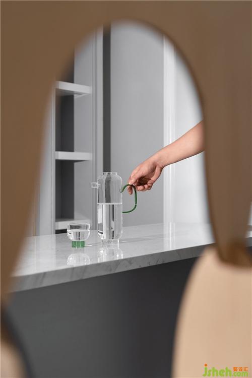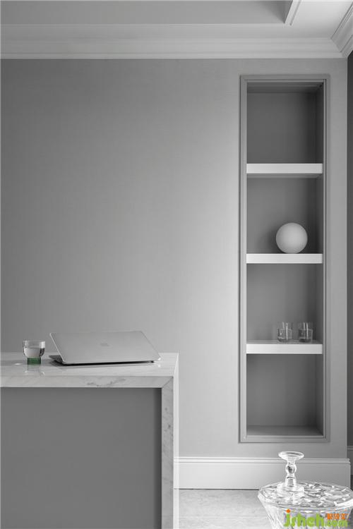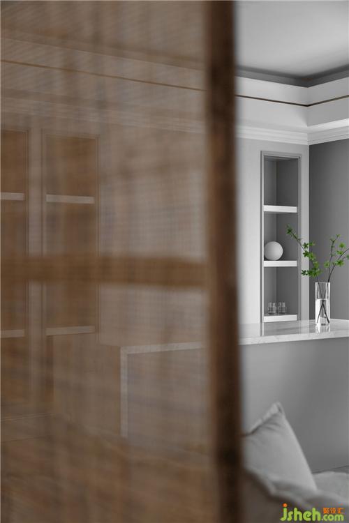 我們在灰白淡雅的空間中隱入細(xì)節(jié),金屬線條的嵌縫,有力地勾勒出吊頂?shù)膶哟?,同時也削弱了低梁位帶來的壓迫感。裝修設(shè)計在客廳空間我們置入一組收納柜,讓公共區(qū)域?qū)崿F(xiàn)視覺穿透性的同時也能保證屋主有足夠整理和歸置收納的空間。