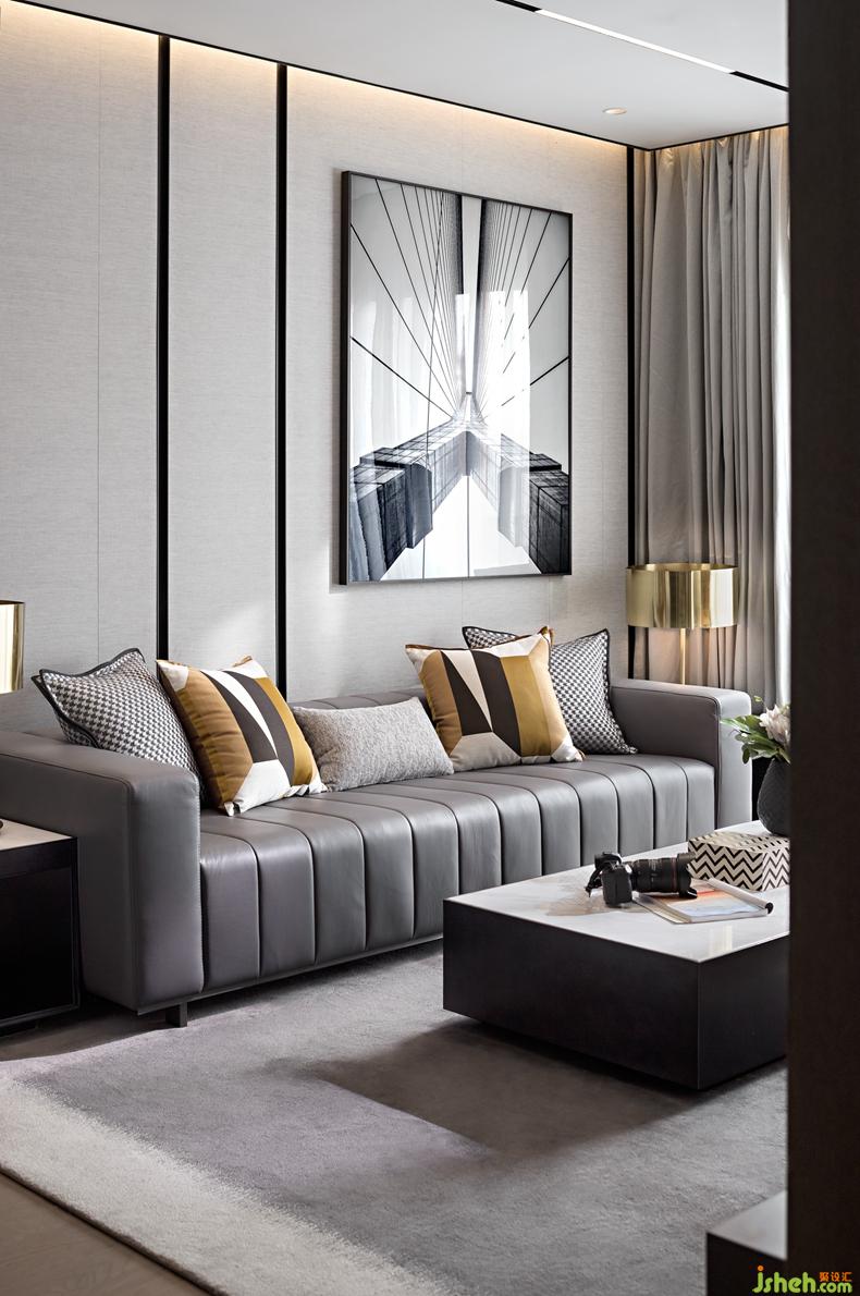 每一條線都經(jīng)過精心設計,橫線的平穩(wěn),豎線的冷靜縱橫織就了現(xiàn)代空間的節(jié)奏感。與之對比的是背景墻上的大幅鐵橋攝影的線條發(fā)散出的張力。深圳設計公司