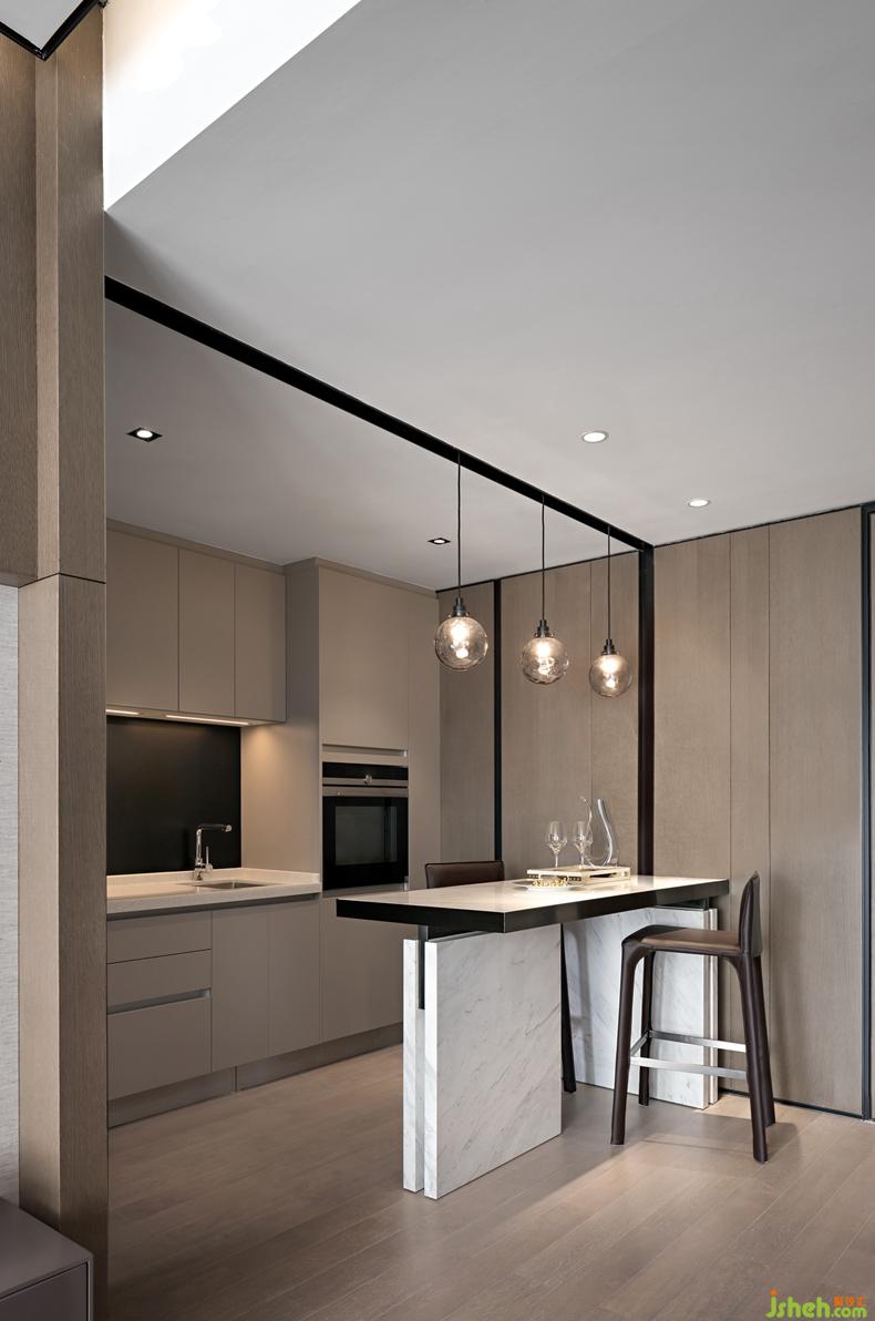 小空間的靈活在餐廳中展現(xiàn)無遺,對坐的吧臺,輕松愜意。氣泡型吊燈剛好照顧到每一餐需要的浪漫氛圍。深圳設計公司