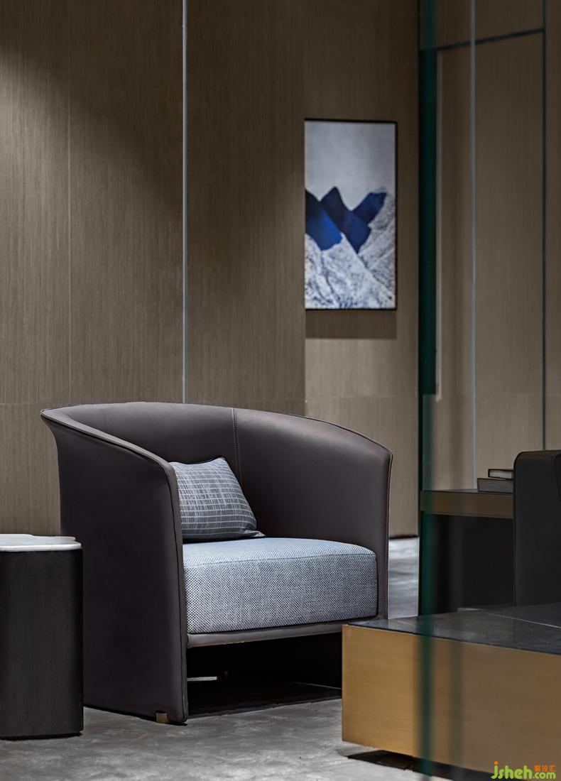 致廣大而盡精微,在小處領(lǐng)略微妙的含義。洽談區(qū)的設(shè)計以簡潔有序的空間布局、清冷簡約的石材、淡雅而節(jié)制的素色沙發(fā),搭配相得益彰,自然的形態(tài)描述出生動的儀式感,所選用意大利Minotti品牌家具,注重舒適度及設(shè)計感的雙重呈現(xiàn)。
