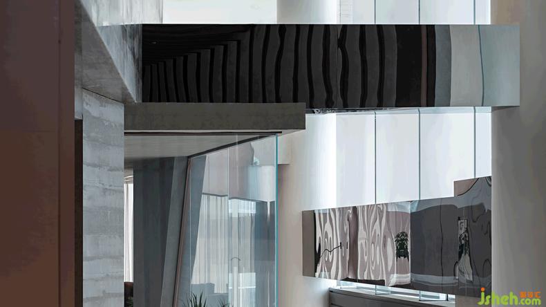 視線在三層豁然開(kāi)朗,這里被打造成一個(gè)凌空的世界,仿佛小說(shuō)中那如夢(mèng)似幻的空間,人們可以融化在遠(yuǎn)方的藍(lán)天中,各種反射讓景物交疊、呼應(yīng),視覺(jué)上的奇幻感讓人目不暇接。