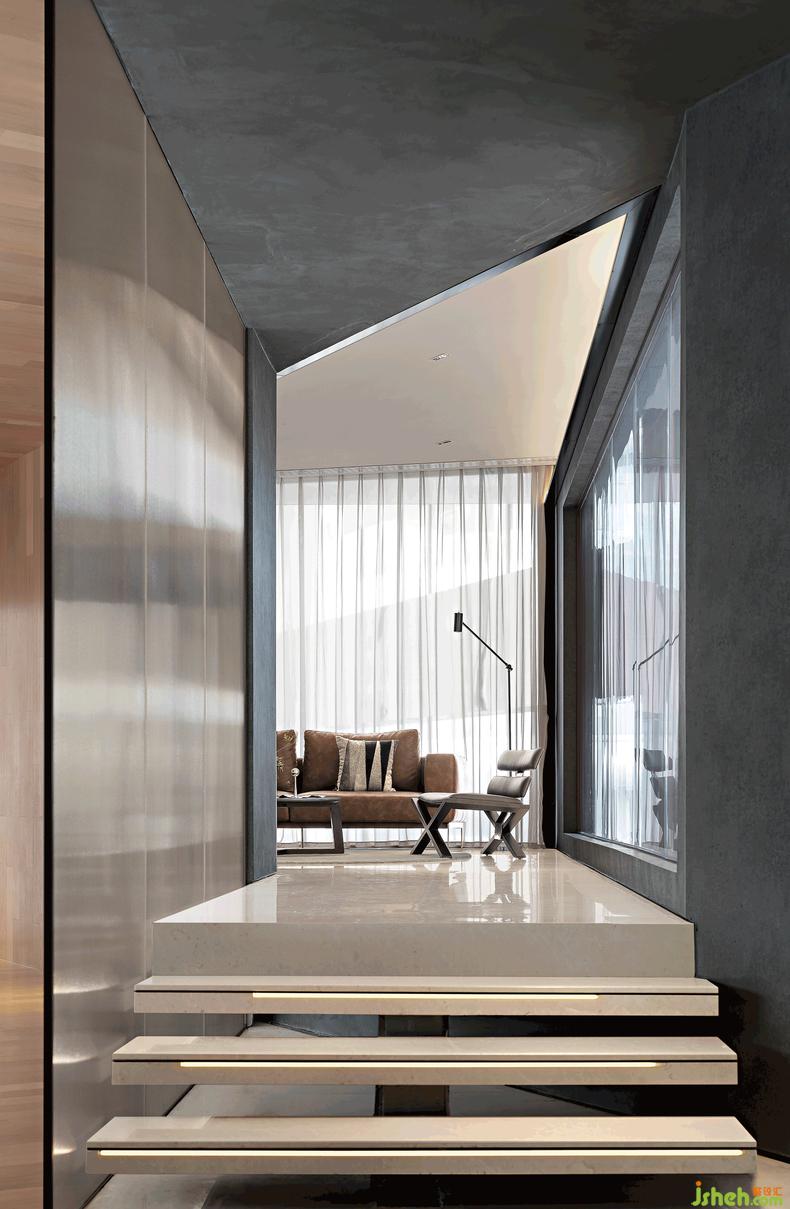 小錯(cuò)層在抬高空間的過(guò)程中,也增加了人們的心里預(yù)期。懸浮樓梯的視覺(jué)質(zhì)感無(wú)比輕盈,米色石材溫馨大氣??臻g設(shè)計(jì)里有一種歐氏幾何學(xué)的智慧:異形引導(dǎo)和對(duì)稱呼應(yīng)讓人們無(wú)法不沉浸其中。