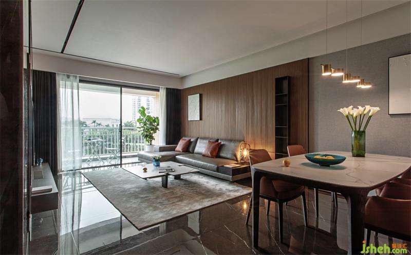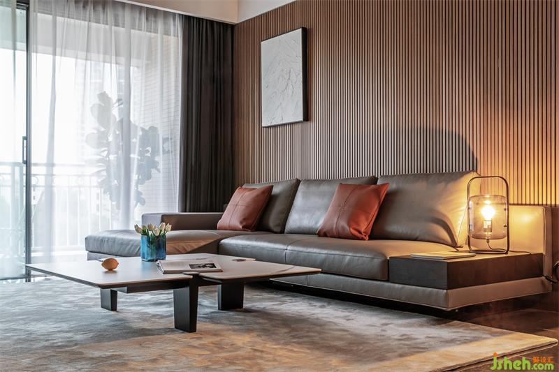 惠州家居設計將電視背景墻延伸至整個立面,使空間整體統(tǒng)一,同時結合功能性,運用切割和嵌入的手法做不對稱的造型處理,打破傳統(tǒng)對稱呆板的背景墻做法。