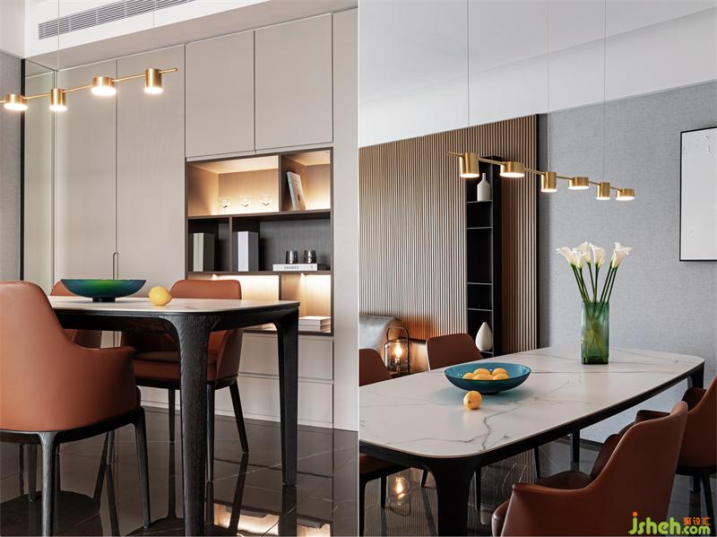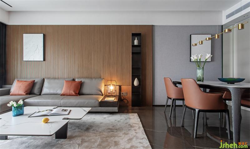 Extend the TV background wall to the entire facade to unify the space as a whole. At the same time, it combines functionality and uses cutting and embedding techniques to do asymmetric modeling, breaking the traditional symmetrical and rigid background wall practice.