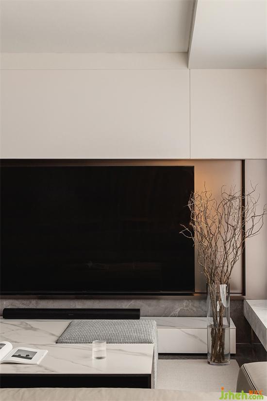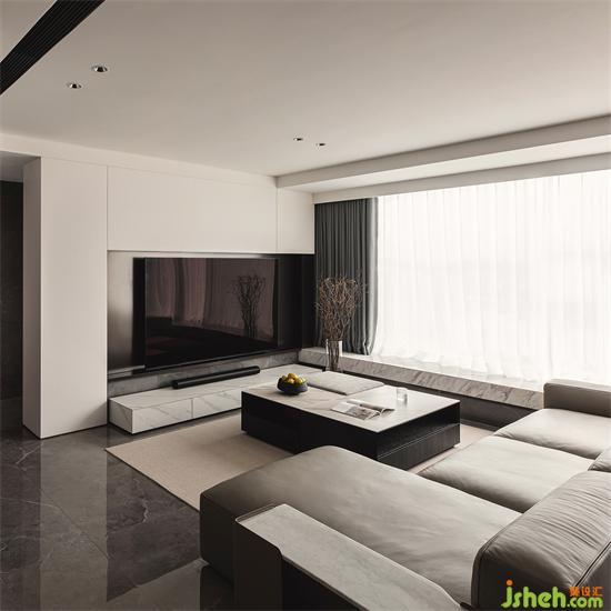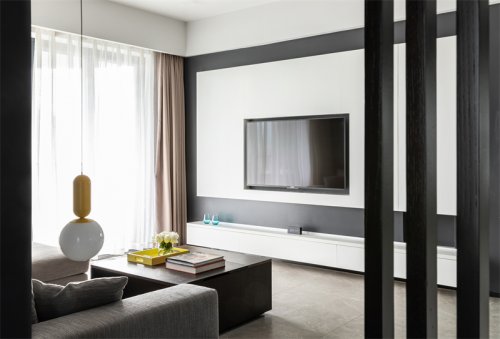 The TV background wall extends to the bay window. Since the upper and lower structure of the bay window cannot be changed, we skillfully combine the disadvantages of the shape and structure, so as to conceal the abruptness brought by the structure, and secondly, it can make the TV background wall more spacious and atmospheric.