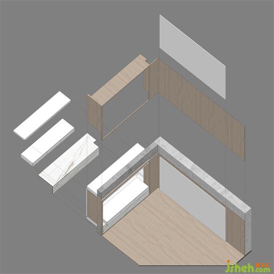 飄窗因為結(jié)構(gòu)的限制,實際的利用效果往往并不理想。家裝設(shè)計主臥飄窗的區(qū)域我們定義為梳妝或收納區(qū),通過造型的疊加與穿插產(chǎn)生結(jié)構(gòu)力量感, 也提高了功能的使用率,激活空間價值。