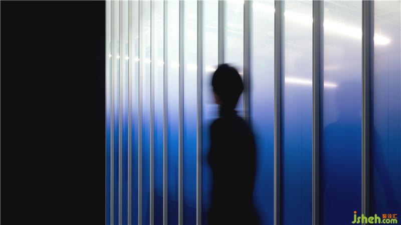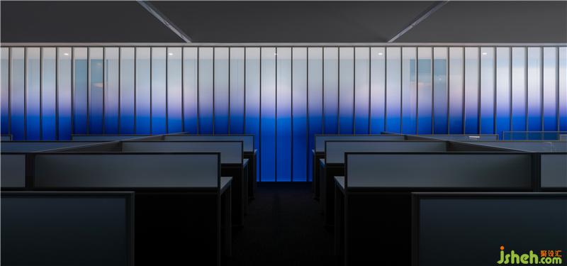 走廊以漸變玻璃作為隔斷,保證透光性的同時遮隱了走廊區(qū)域的活動,避免因為來回走動對工作區(qū)域造成的干擾。