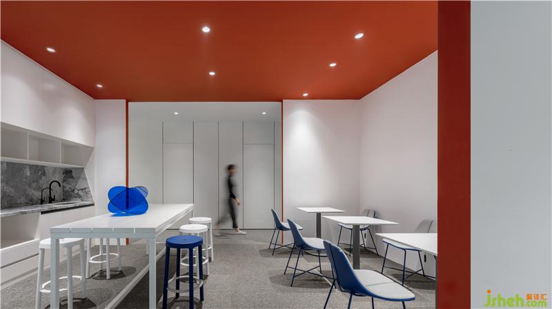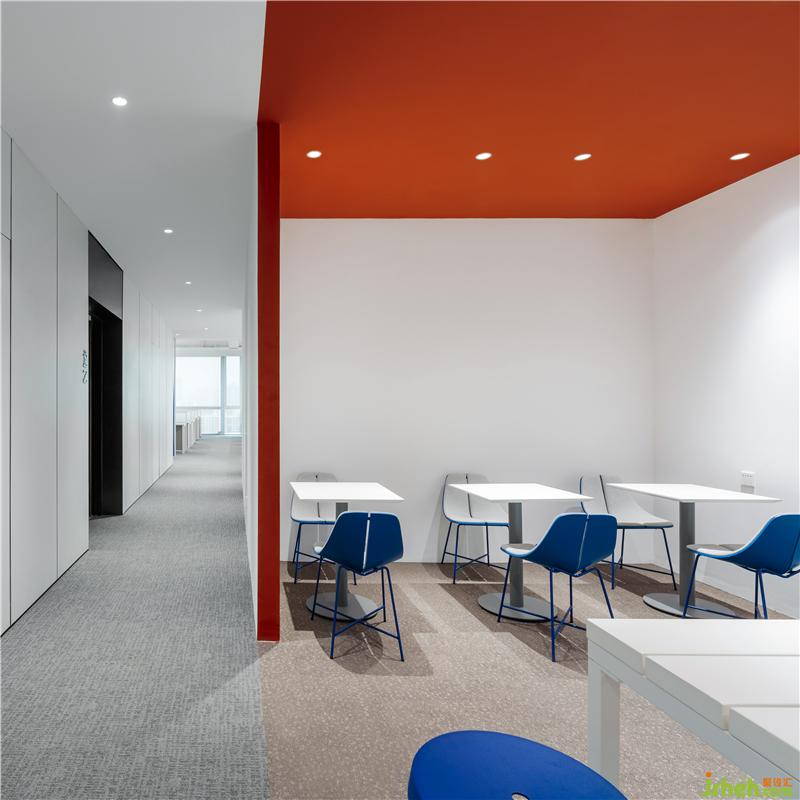 設(shè)計延續(xù)了活力的紅色與冷靜的藍(lán)色色塊,以色彩渲染間接影響員工的工作情緒與場景需求,在這樣的空間中人與空間的狀態(tài)是靈活的,多變的。設(shè)計認(rèn)為只有真正地將空間與人的需求結(jié)合起來,改進(jìn)或重新配置辦公空間, 才能滿足員工對工作環(huán)境不斷轉(zhuǎn)變的需求,進(jìn)一步提升企業(yè)的創(chuàng)新力和抗逆力。