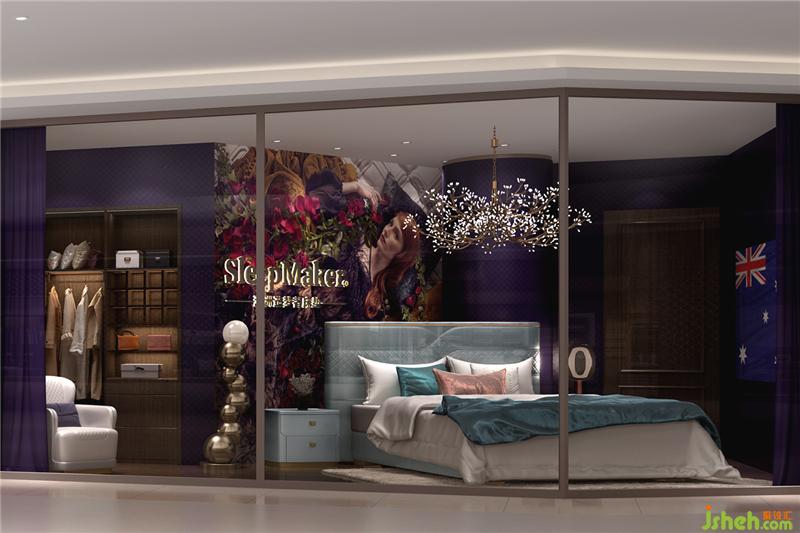 ”英雄藍”代表了SleepMaker獨有品牌色,菱格紋與皮質(zhì)再現(xiàn)了其品質(zhì)的追求,我們將其重新提煉并貫穿于空間中,完成品牌獨有的呈現(xiàn)與價值輸出。