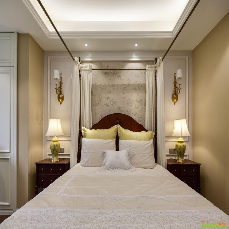 主臥室保持了暖色的基調(diào),室內(nèi)設(shè)計(jì)師以暖色背景為底,黃色擺件點(diǎn)綴,重色的美式家具讓空間顯得大氣穩(wěn)重。在床的選擇上,特意挑了帶床幔的款式,單色的床幔以簡單的抽褶方式掛在橫桿上,簡單大方,讓睡眠空間保持相對獨(dú)立、安靜而私謐。