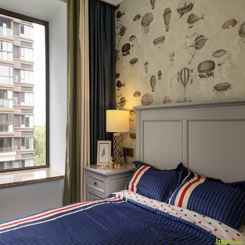兒童房的設計簡約卻不失童真,滿布天空的熱氣球激發(fā)著小朋友無限的想象熱情,室內(nèi)設計師精心挑選的深藍色床品是溫馨的甜夢海洋。拉上三色漸變窗簾,便是父母在舒服的窩在床上給小家伙講睡覺前故事的美好夜晚。