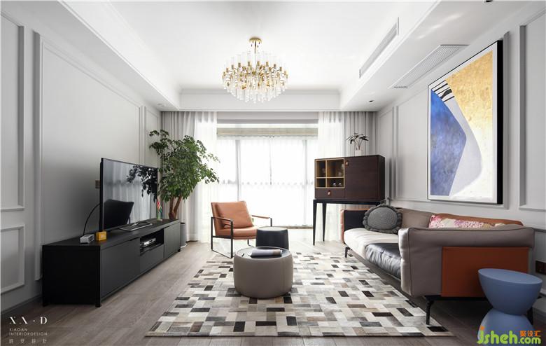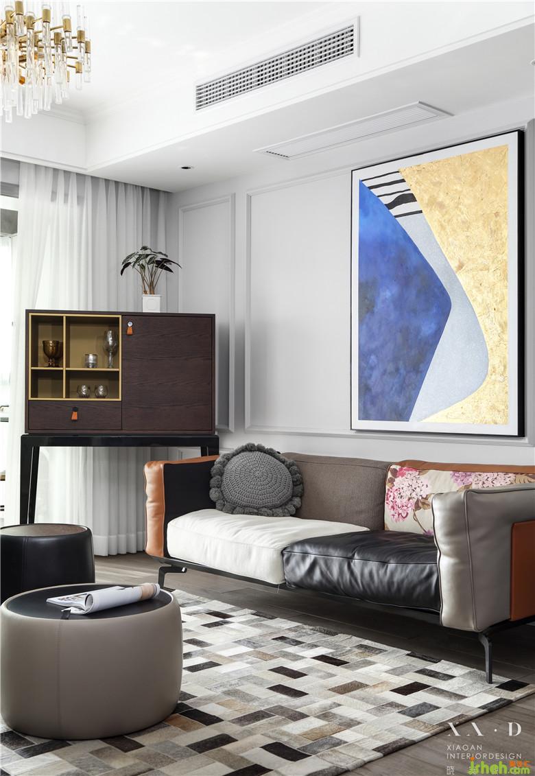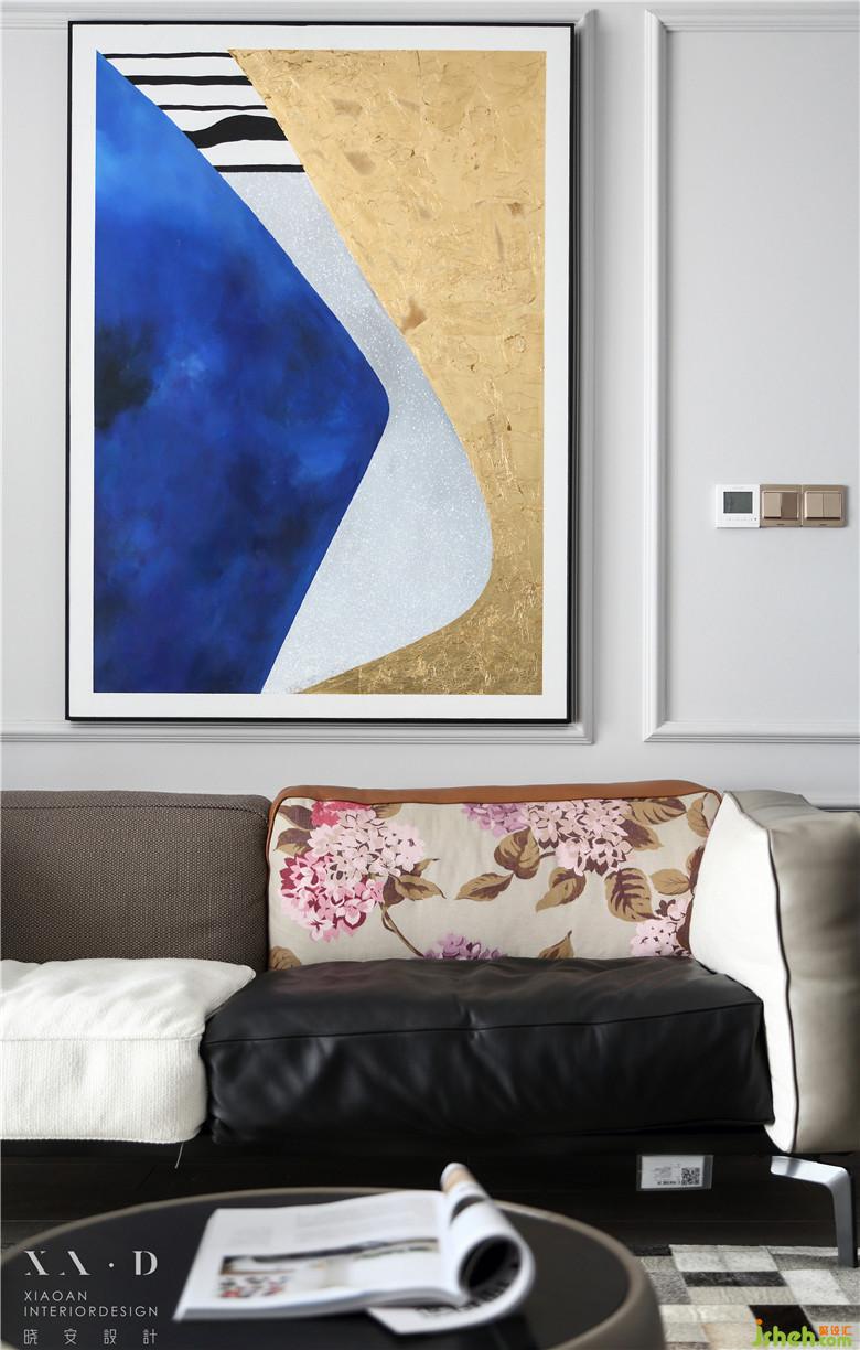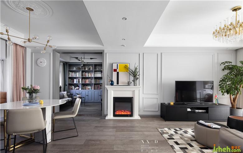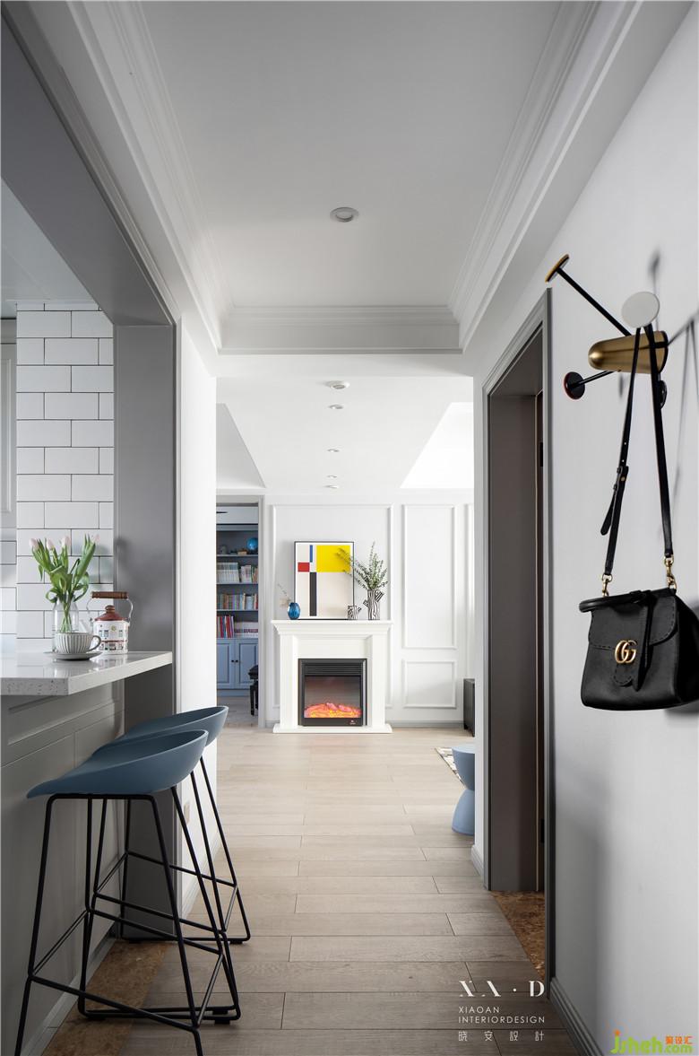 因?yàn)榘研P(guān)端景的墻體拆除,從風(fēng)水學(xué)角度來(lái)說(shuō)需要有一個(gè)端景作為一個(gè)入戶的玄關(guān),室內(nèi)設(shè)計(jì)師把原有的過(guò)道端口封掉,保證了電視背景墻整體性。玄關(guān)端景處安置的裝飾性壁爐,配上定制的裝飾畫(huà),一進(jìn)門(mén)就會(huì)有一種視覺(jué)的沖擊力。